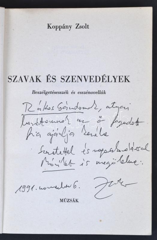 Koppány Zsolt: Szavak és szenvedélyek. Dedikált! Bp., 1991 Múzsák https://www.darabanth.com/de/192-Fernauktion/192.0/Andere-Sammelgebiete/Bucher-Sonstige-Raritaten~2000038/Koppany-Zsolt-Szavak-es-szenvedelyek-Dedikalt-Bp-1991-Muzsak~II729808