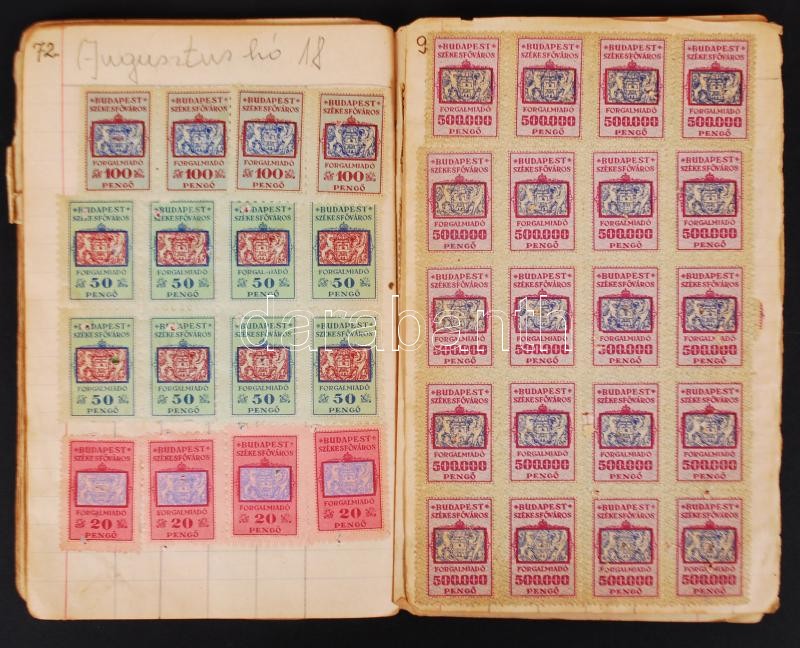 1941-1946 Forgalmi adókönyv, sok okmánybélyeggel, visletes állapotban https://www.darabanth.com/de/192-Fernauktion/192.0/Andere-Sammelgebiete/Dokument~2000021/1941-1946-Forgalmi-adokonyv-sok-okmanybelyeggel-visletes-allapotban~II725443