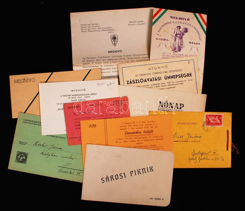 11 db háború előtti meghívó, reklám https://www.darabanth.com/de/192-Fernauktion/192.0/Andere-Sammelgebiete/Drucksachen~2000023/11-db-haboru-elotti-meghivo-reklam~II709306