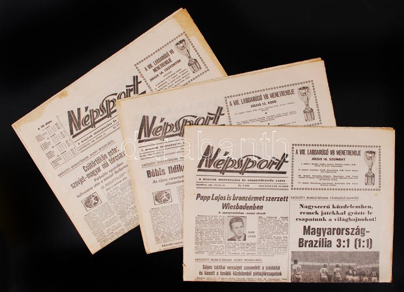 1966 3 db Népsport főleg az angliai VB eseményeiről https://www.darabanth.com/de/192-Fernauktion/192.0/Andere-Sammelgebiete/Drucksachen~2000023/1966-3-db-Nepsport-foleg-az-angliai-VB-esemenyeirol~II726216