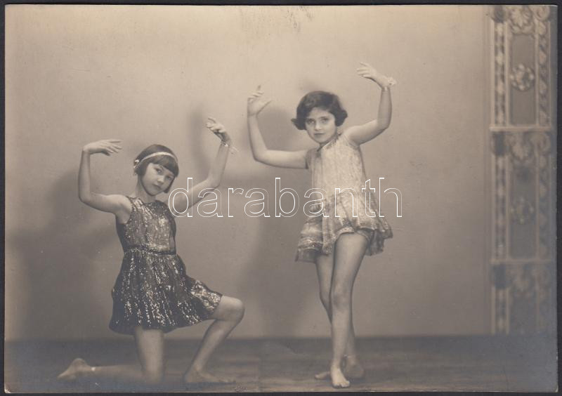 Cca 1920-1930 Ismeretlen szerző korabeli fotója a Szentpál Olga féle mozdulatművészeti iskola két tanulójáról. A fotón: Kovács Margit és Deutsch Éva. 11x15 cm