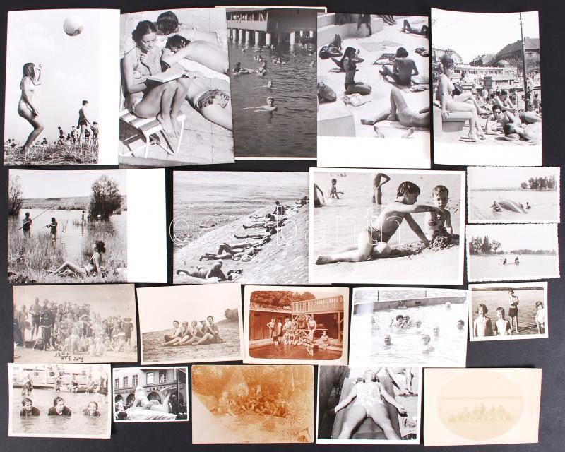 Cca 1920-1990 56 db, kfl méretű fotó tétel a fürdőzésről, fürdőruhás emberekről, vízben és vízparton. A tételben 20 db 18x24 cm; 9 db 13x18 cm; 27 db 9x14 cm vagy ennél kisebb képek vannak