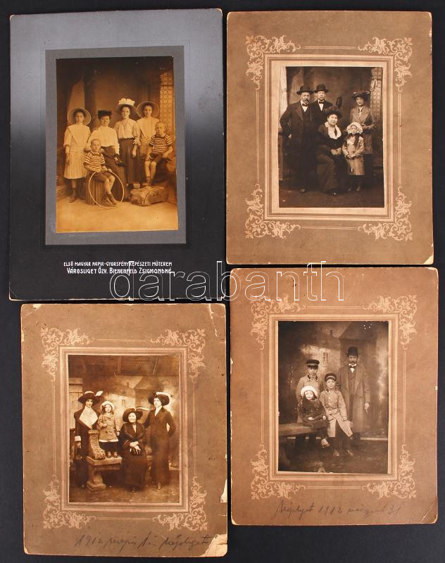 Beschreibung: cca 1900-1910 4 db régi fénykép a Városligeti és a Népligeti gyorsfényképészek műterméből, kartonra ragasztva