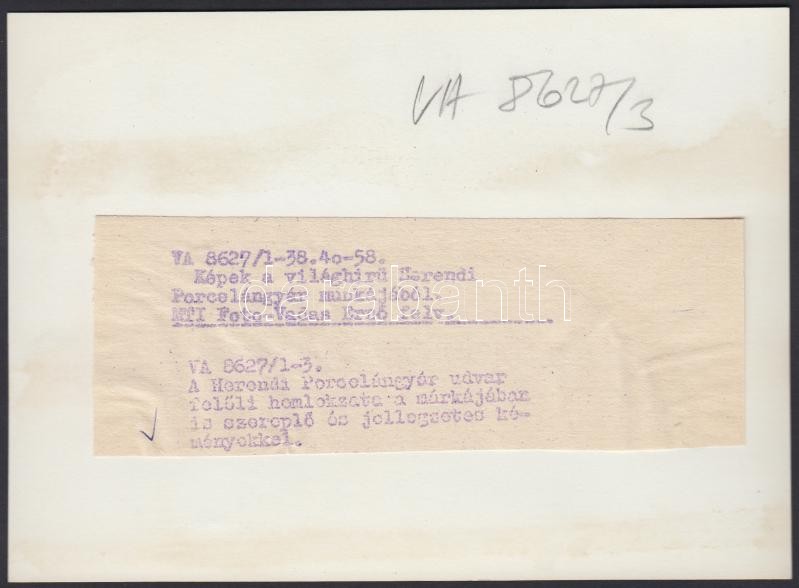 cca 1960 Vadas Ernő (1899-1962): A Herendi Porcelángyár udvar felőli h... https://www.darabanth.com/de/192-Fernauktion/192.0/Andere-Sammelgebiete/Foto~2000025/cca-1960-Vadas-Erno-1899-1962-A-Herendi-Porcelangyar-udvar-feloli-homlokzata-Sajtofoto-hC3~II725448