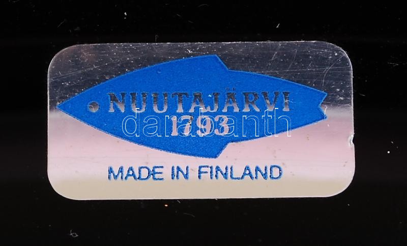 Kézzel készített, jelzett Nuutajärvi retró üvegtál színes üvegbetétekkel a tervező, Pertti Santalahti finn üvegművész szignójával /