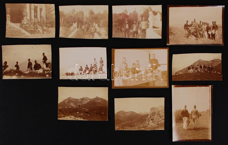 Beschreibung: 1904 Gyakorlatozó katonák, nagyrészt Ágostonfalva (Velbach) közelében készült fotó / Soldiers near Velbach 11 db 8x5 cm