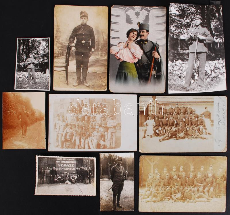 Beschreibung: 1914-1960 9 db katonai és egy választási fotó, 5×8-11×13 cm