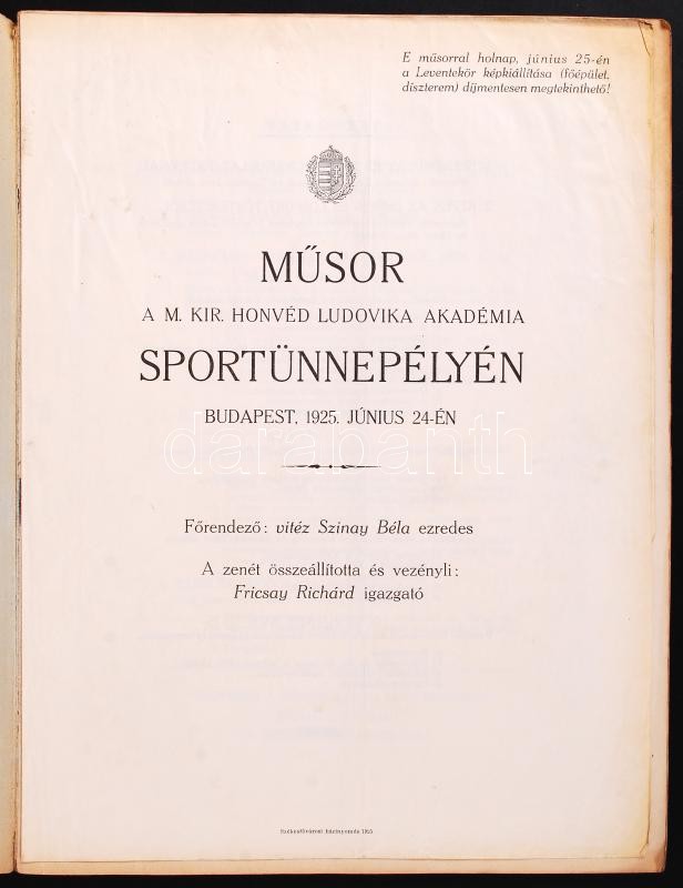 Beschreibung: 1925 Ludovikás Levente, IV/1, mellékelve a M. Kir. Honvéd Ludovika Akadémia sportünnepélyének műsora