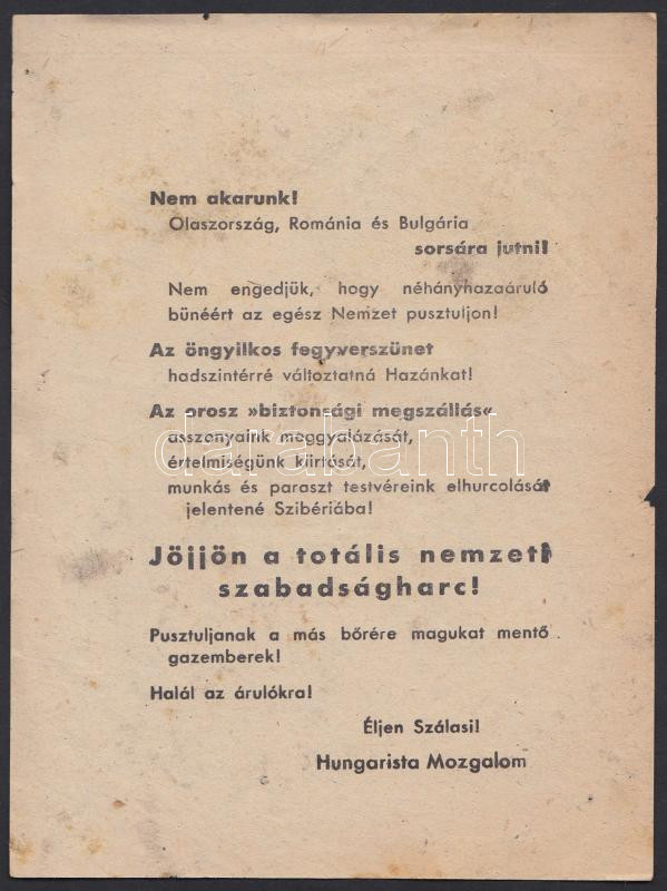 1930 Jöjjön a totális nemzeti szabadságharc! Hungarista Mozgalmis pro... https://www.darabanth.com/de/192-Fernauktion/192.0/Andere-Sammelgebiete/Militaria~2000017/1930-Jojjon-a-totalis-nemzeti-szabadsagharc-Hungarista-Mozgalmis-propaganda-szorolap~II728633
