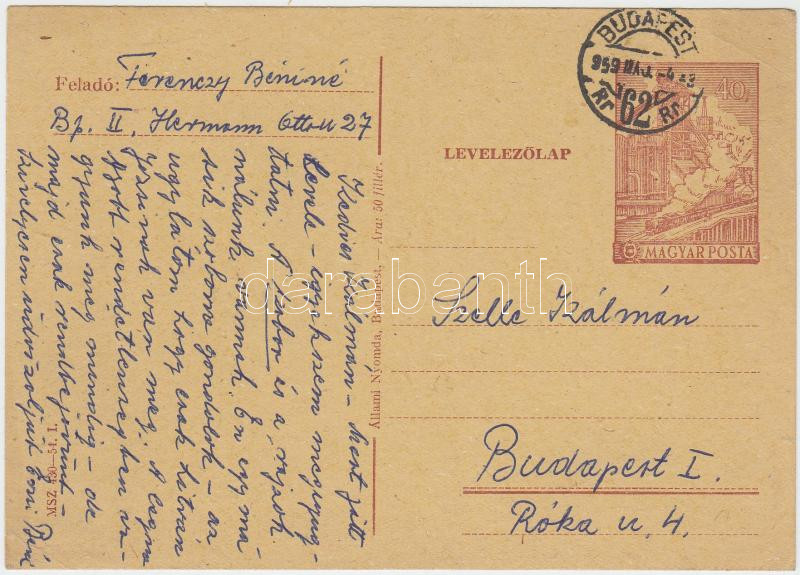 Beschreibung: 1959 Ferenczi Béniné saját kézzel írt levelezőlapja Szelle Kálmánnak