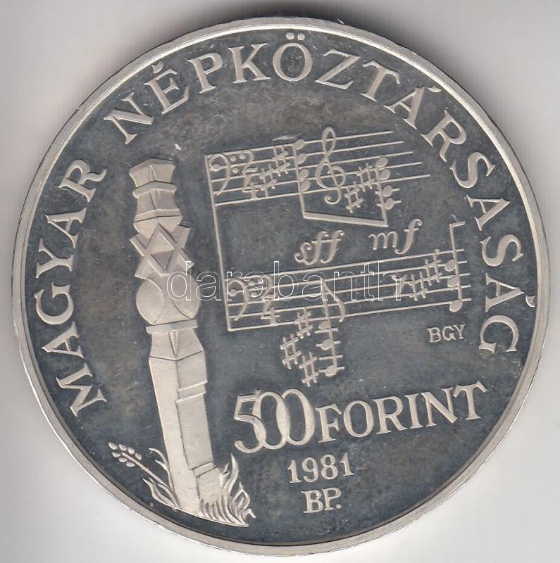 1981. 500Ft Ag "Bartók Béla" T:PP https://www.darabanth.com/de/192-Fernauktion/192.0/Numismatik/Ungarische-Munzen~200010/1981-500Ft-Ag-Bartok-Bela-TPP~II725459
