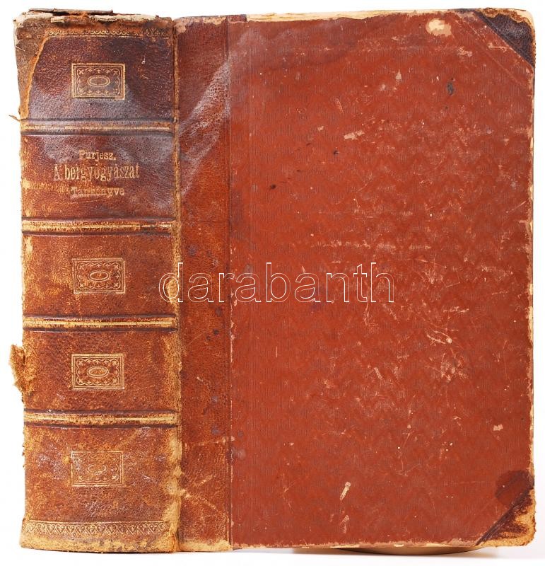 Dr. Purjesz Zsigmond: A Belgyógyászat Tankönyve. Orvosnövendékek és gyakorló orvosok száméra. A szövegek között számos nyomott ábrával. Franklin- Társulat (magyar irod. intézet és könyvnyomda), Bp. 1885. Megviselt állapotban, gerince aranyozott bÅ‘rkötésű, kisebb szakadásokkal, borÃtó kopott.