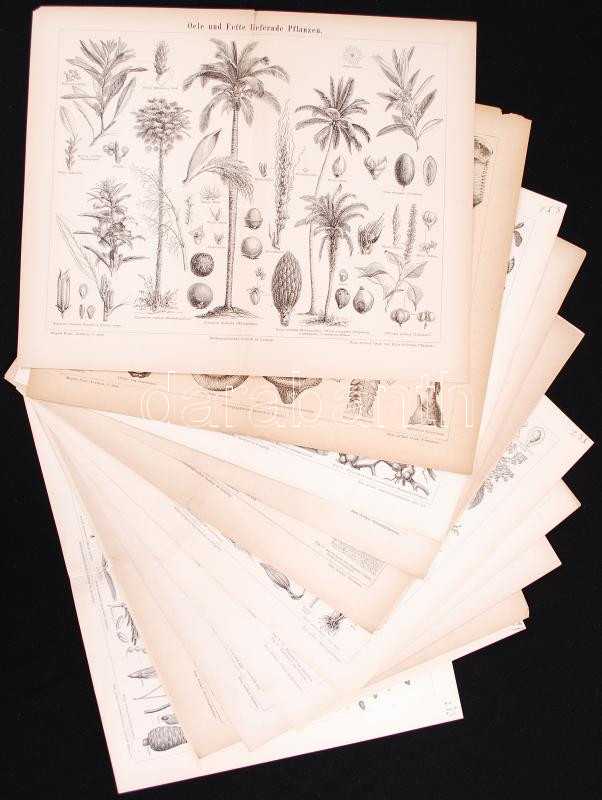 Beschreibung: Cca 1890 A Meyers Konv. Lexikon 13 db dupla oldalas illusztrációja a növényvilágról. 30,5x24,5 cm