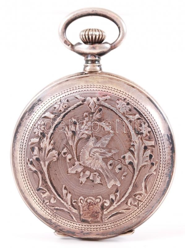 Beschreibung: Ezüst (Ag.) dupla fedeles gazdagon cizellált zsebóra, másodperc mutatós, jelzett, bruttó: 28 g, d:3,3 cm
