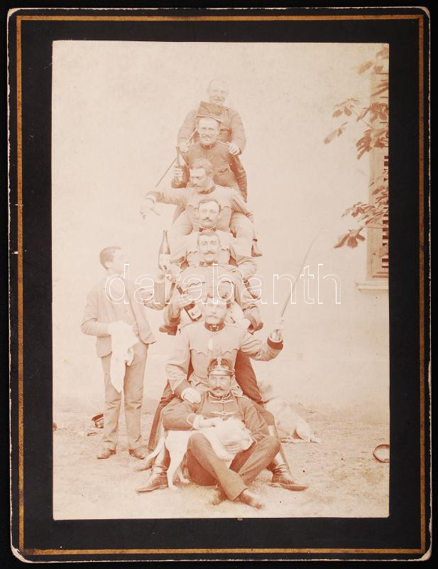Beschreibung: cca 1890 Mulató katonák keményhátú fotó 12x18 cm