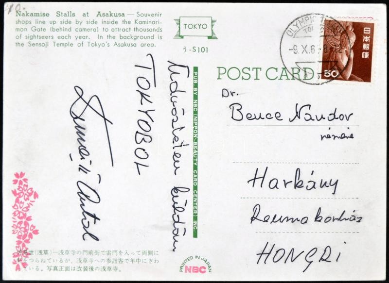 Beschreibung: 1964 Dunai Antal válogatott,olimpiai bajnok futballista aláírása képeslapon