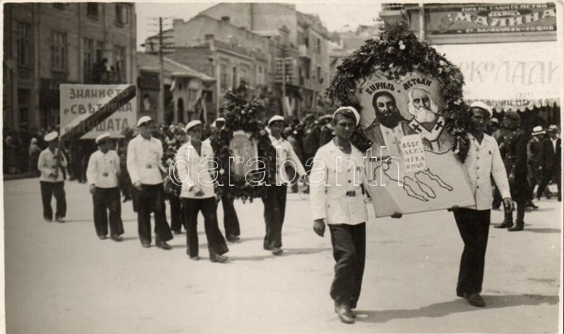 Sofia mariner procession, Saints Cyril and Methodius, photo https://www.darabanth.com/de/193-Fernauktion/193.0/Ansichtskarten/Bulgarien~800057/Sofia-mariner-procession-Saints-Cyril-and-Methodius-photo~II732462