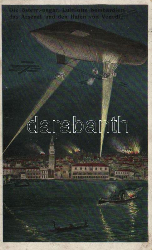 The Austro-Hungarian air force bombard Venice, WWI (Rb) https://www.darabanth.com/de/193-Fernauktion/193.0/Ansichtskarten/Fesselballons~800118/The-Austro-Hungarian-air-force-bombard-Venice-WWI-Rb~II734892