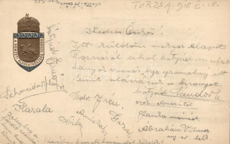 Beschreibung: A nemzeti áldozatkészség szobra / The statue of the national sacrifice, crest, Emb.