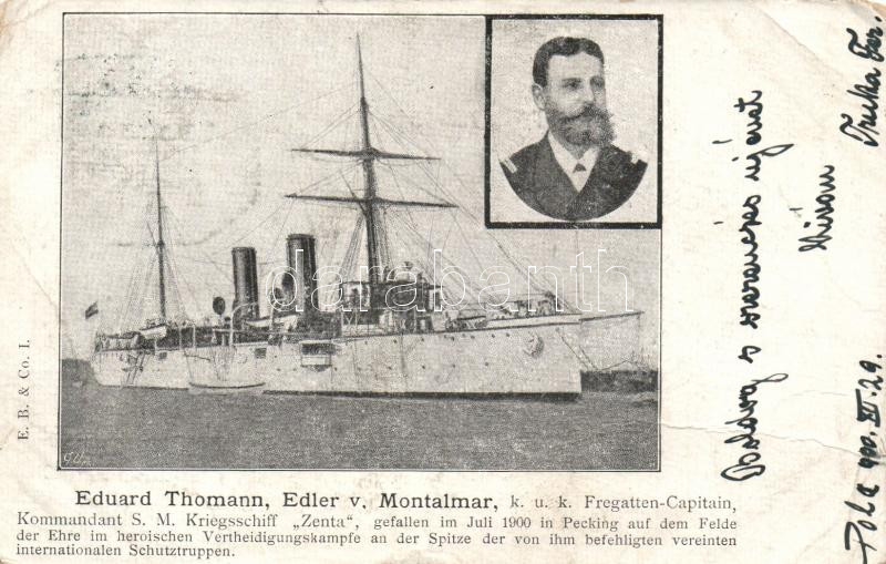 K.u.K. navy, SMS Zenta, Eduard Thomann (fa) https://www.darabanth.com/de/193-Fernauktion/193.0/Ansichtskarten/Kriegsschiffe~800093/KuK-navy-SMS-Zenta-Eduard-Thomann-fa~II732284