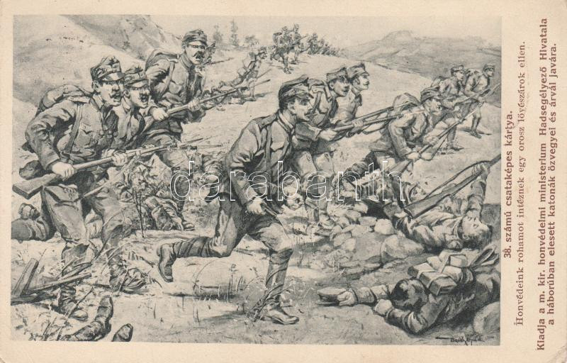 '38. számú csataképes kártya', magyar honvédok rohamot intéz... https://www.darabanth.com/de/193-Fernauktion/193.0/Ansichtskarten/Militaria~800111/38-szamu-csatakepes-kartya-magyar-honvedok-rohamot-inteznek-egy-orosz-loveszarok-ellen-~II737376