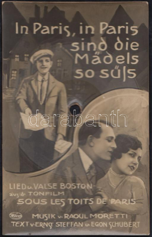 Postcard record, Sous les toits de Paris (fa) https://www.darabanth.com/de/193-Fernauktion/193.0/Ansichtskarten/Musik-Musikanten~800092/Postcard-record-Sous-les-toits-de-Paris-fa~II733999