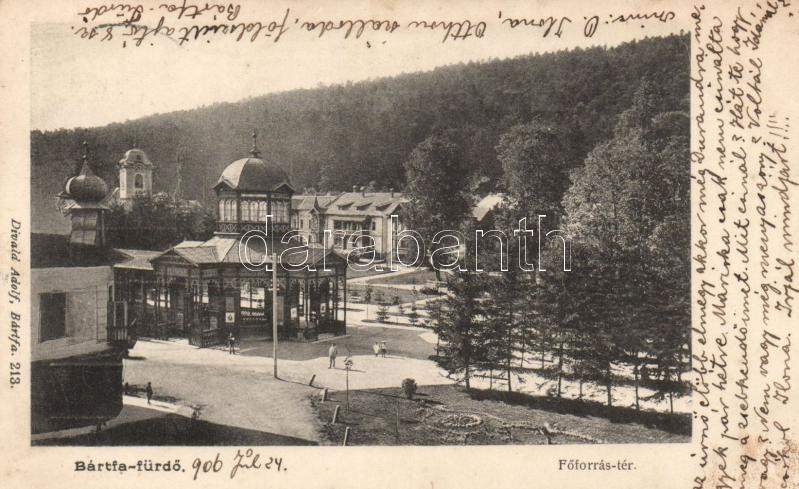 Bártfafürdő Főforrás tér / Main source square https://www.darabanth.com/de/193-Fernauktion/193.0/Ansichtskarten/Slowakei~400008/Bartfafurdo-Foforras-ter-Main-source-square~II732599