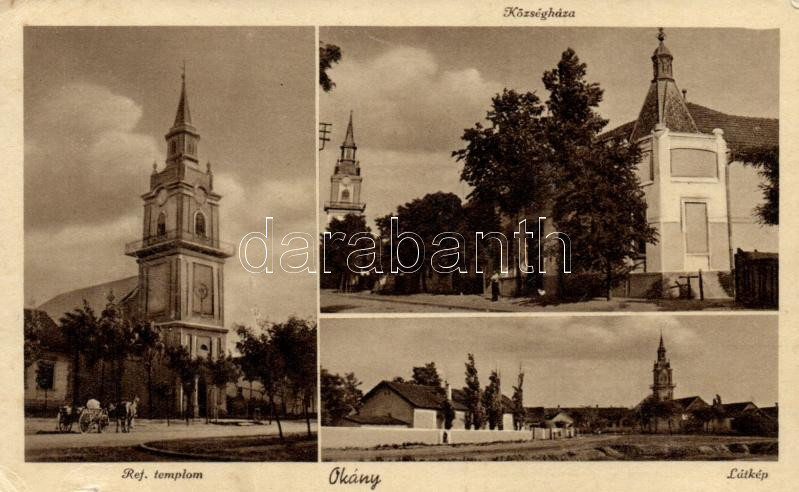 Okány községháza, Református templom (kis szakadás / small tear) https://www.darabanth.com/de/193-Fernauktion/193.0/Ansichtskarten/Ungarn~400005/Okany-kozseghaza-Reformatus-templom-kis-szakadas-small-tear~II733212