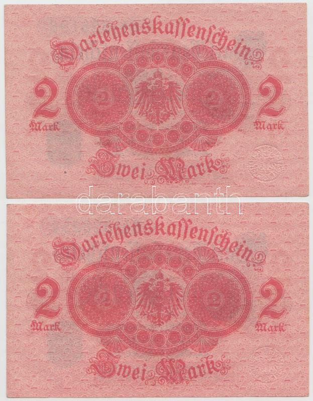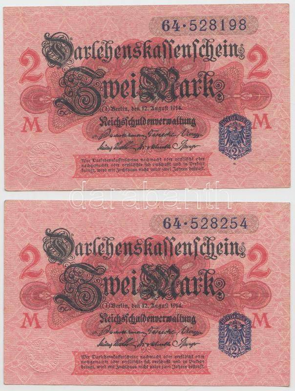 Germany / Empire 1914. 2 Mark (2x) with blue seal C:UNC,XF
