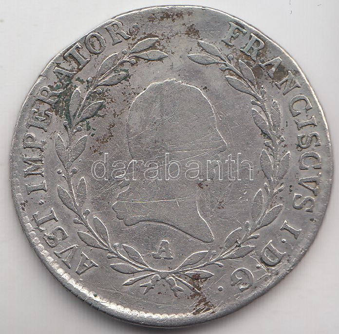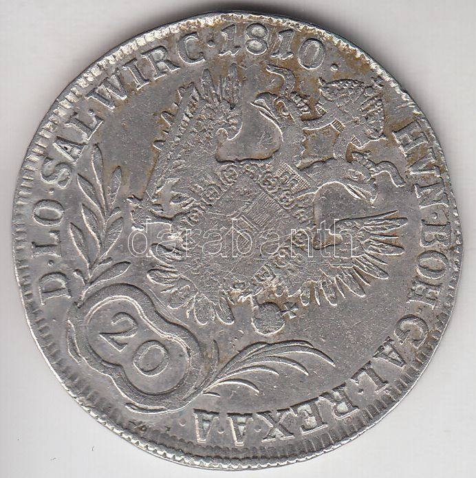 Austria 1810A 20 Kr... https://www.darabanth.com/de/193-Fernauktion/193.0/Numismatik/Auslandische-Munzen~12/Ausztria-1810A-20Kr-Ag-II-Ferenc-T2--3Cbr3EAustria-1810A-20-Kreuzer-Ag-Franz-II-CVF~II732223