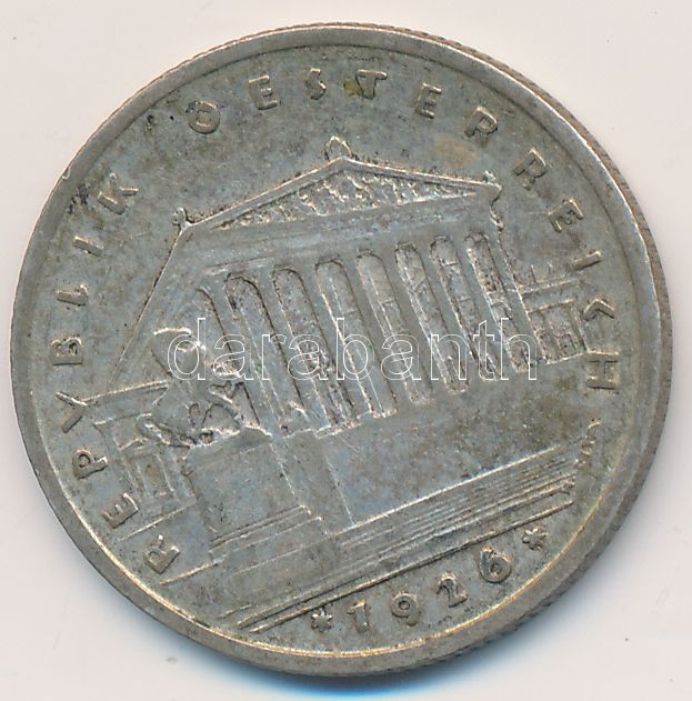 Austria 1926. 1 Schilling Ag C:VF https://www.darabanth.com/de/193-Fernauktion/193.0/Numismatik/Auslandische-Munzen~12/Ausztria-1926-1Sch-Ag-T2--3Cbr3EAustria-1926-1-Schilling-Ag-CVF~II732743