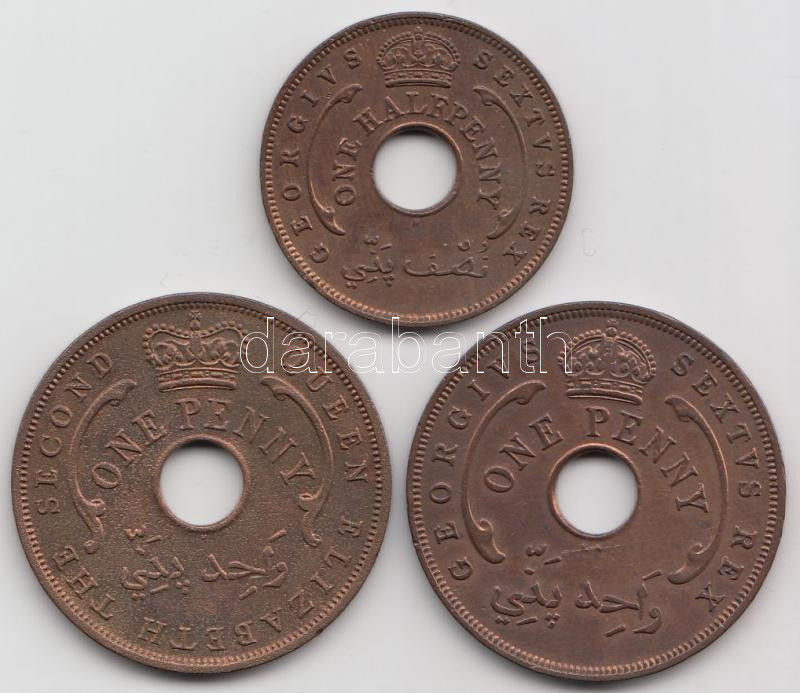 British West Africa 1952. 1/2 Penny + 1952-1956. 1 Penny (2x) C:UNC