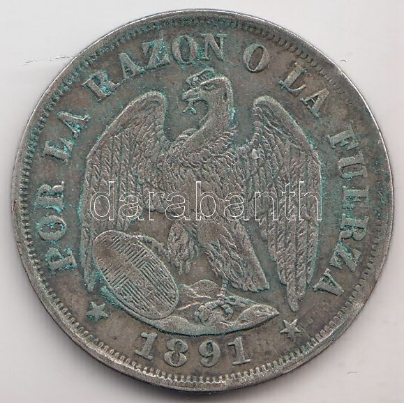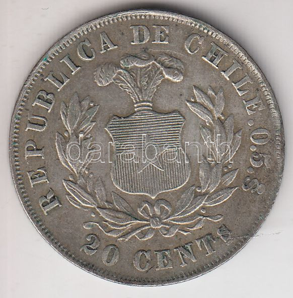 Chile 1891. 20 centavos Ag (4.08g) C:F https://www.darabanth.com/de/193-Fernauktion/193.0/Numismatik/Auslandische-Munzen~12/Chile-1891-20c-Ag-408g-T3-3Cbr3EChile-1891-20-centavos-Ag-408g-CF~II733915