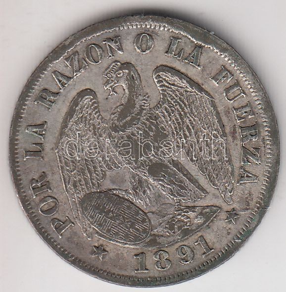 Chile 1891. 20 centavos Ag (4.95g) C:F https://www.darabanth.com/de/193-Fernauktion/193.0/Numismatik/Auslandische-Munzen~12/Chile-1891-20c-Ag-495g-3Cbr3EChile-1891-20-centavos-Ag-495g-CF~II733917