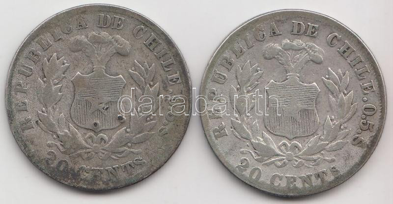 Chile 1892. 20 centavos Ag (4.76g) + 1893. 20 centavos Ag (4.66g) C:F