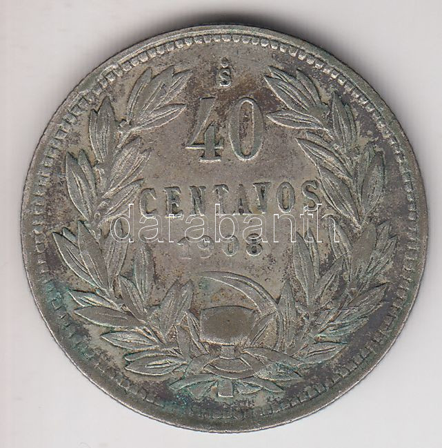 Chile 1908. 40 centavos Ag (5.87g) C:F https://www.darabanth.com/de/193-Fernauktion/193.0/Numismatik/Auslandische-Munzen~12/Chile-1908-40c-Ag-587g-T3-3Cbr3EChile-1908-40-centavos-Ag-587g-CF~II733909