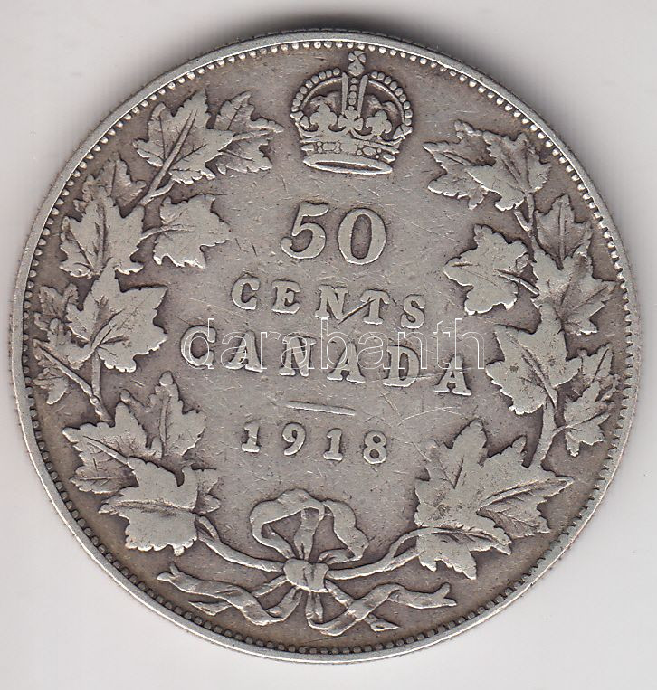 Canada 1918. 50... https://www.darabanth.com/de/193-Fernauktion/193.0/Numismatik/Auslandische-Munzen~12/Kanada-1918-50c-Ag-V-Gyorgy-1151g-T3-3Cbr3ECanada-1918-50-cents-Ag-George-V-1151g-CF~II734039