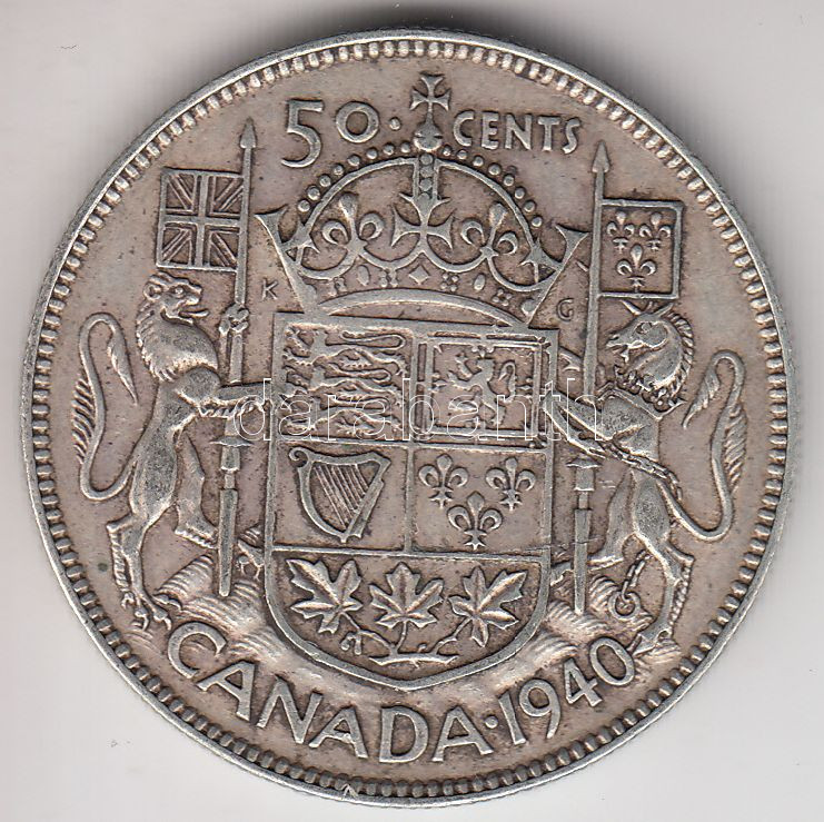 Canada 1940. ... https://www.darabanth.com/de/193-Fernauktion/193.0/Numismatik/Auslandische-Munzen~12/Kanada-1940-50c-Ag-VI-Gyorgy-1164g-T2--3Cbr3ECanada-1940-50-cents-Ag-George-VI-1164g-C~II734042