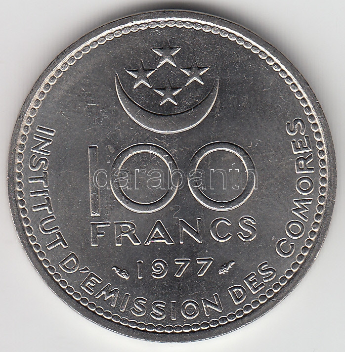 Comoros 1977. 100 Francs C:UNC https://www.darabanth.com/de/193-Fernauktion/193.0/Numismatik/Auslandische-Munzen~12/Komori-szigetek-1977-100Fr-TI-3Cbr3EComoros-1977-100-Francs-CUNC~II707620
