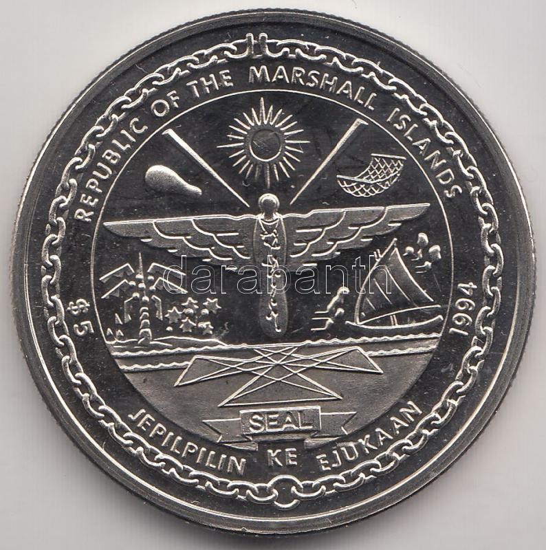 Beschreibung: Marshall-szigetek 1989. 5$ "Első ember a Holdon" díszkiadásban T:BU
