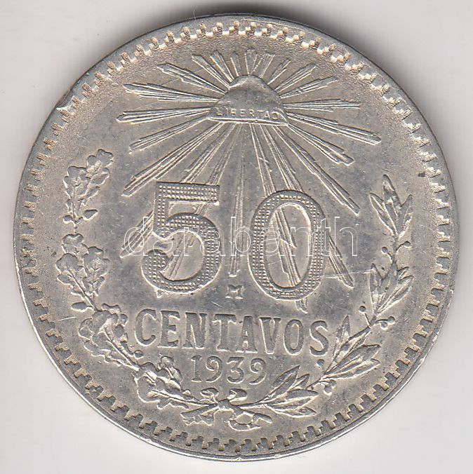 Mexico 1939. 50 centavos Ag (8.28g) C... https://www.darabanth.com/de/193-Fernauktion/193.0/Numismatik/Auslandische-Munzen~12/Mexiko-1939-50c-Ag-828g-T2--3Cbr3EMexico-1939-50-centavos-Ag-828g-CVF~II734305