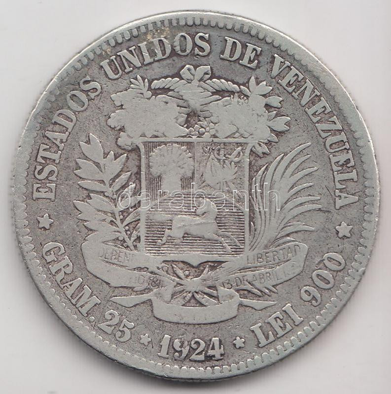 Beschreibung: Venezuela 1924. 5B Ag (24.57g) T:3
