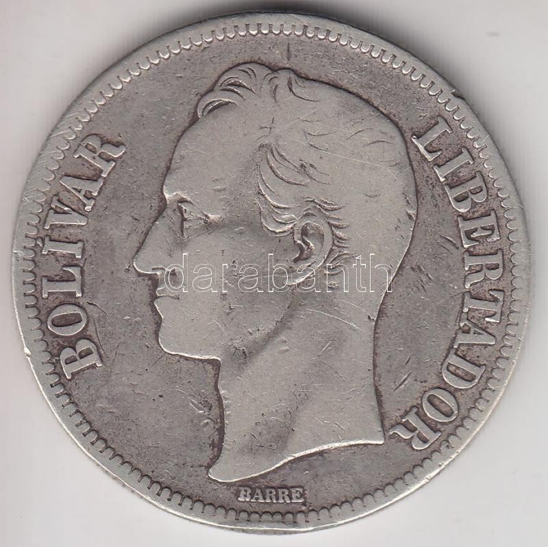 Venezuela 1924. 5 Bolivar Ag (24.57g) C:F