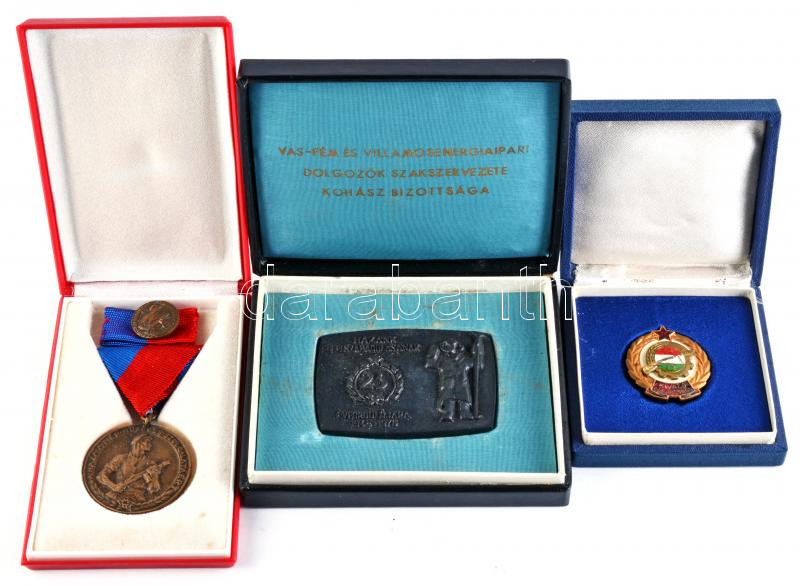 Beschreibung: 1964. Munkásőr kitüntetés mellszalaggal, szalagsávval és miniatűrrel, dísztokban T:1 + 1965. "Munkásőr Kiváló Parancsnok" zománcozott aranyozott kitüntető jelvény T:2 dísztokban + 1970. Vas-fém és Villamosenergiaipari Dolgozók Szakszervezete Kohász Bizottsága "Hazánk Felszabadulásának 25. évfordulójára" plakett eredeti dísztokban T:2