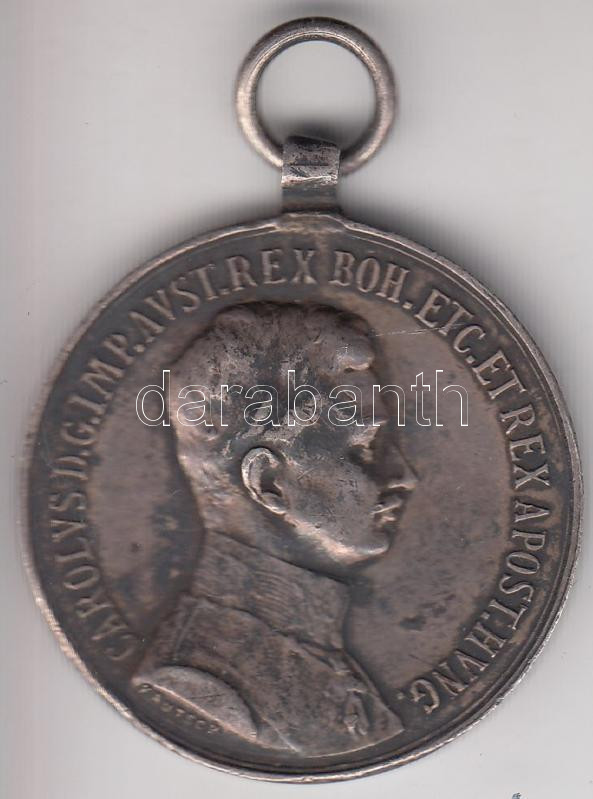 1917. "Károly Bronz Vitézségi Érem" Br kitüntetés mellszalag nélkül szign.:KAUTSCH T:2