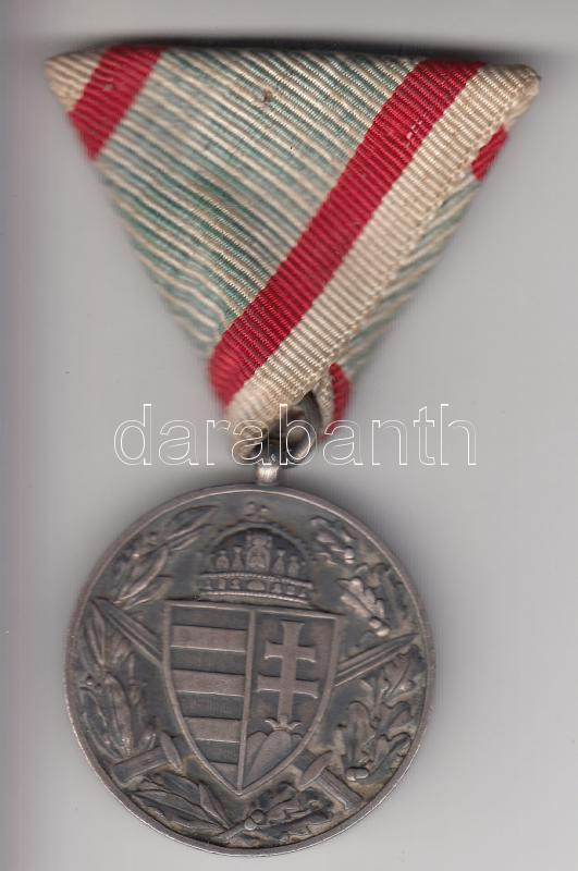 Hungary 1929. Commemorative Medal for World War I for combatants, silver plated Ag medal on wartime ribbon, with "BRONZ" hallmark C:XF