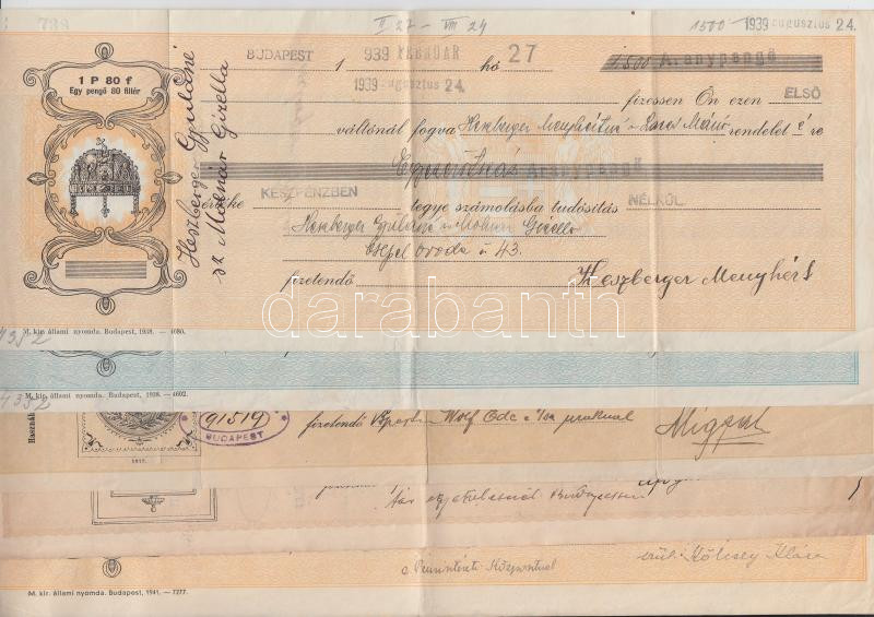1896-1947. 5db klf váltó T:III https://www.darabanth.com/de/193-Fernauktion/193.0/Numismatik/Numismatische-Dokumente-und-Briefe~21/1896-1947-5db-klf-valto-TIII~II737276