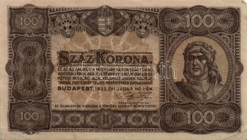 1920. 10K T:I-,II + 1923. nyomdahely jelölés nélkül 100K T:II(sarkok h... https://www.darabanth.com/de/193-Fernauktion/193.0/Numismatik/Ungarische-Banknoten~7/1920-10K-TI-II-plus-1923-nyomdahely-jeloles-nelkul-100K-TIIsarkok-hajtottak~II724567
