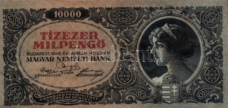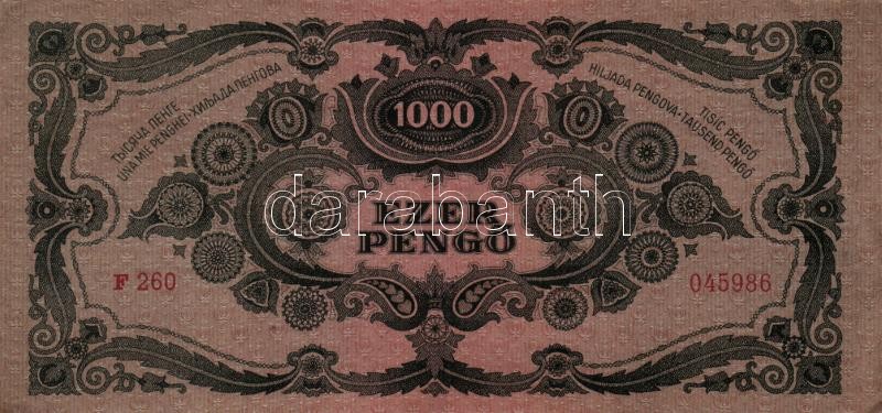 1945. 1000P bélyeg nélkül T:II- + 10.000P bélyeggel + 100.000P + 1.000... https://www.darabanth.com/de/193-Fernauktion/193.0/Numismatik/Ungarische-Banknoten~7/1945-1000P-belyeg-nelkul-TII-plus-10000P-belyeggel-plus-100000P-plus-1000000P-plus-10000000P-plus-1946~II720697