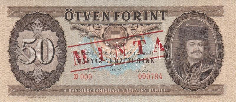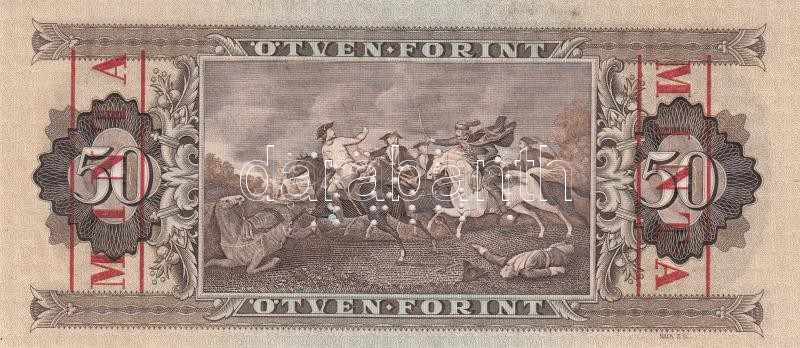 1969. 50Ft "MINTA" perforációval és felülnyomással "D 0... https://www.darabanth.com/de/193-Fernauktion/193.0/Numismatik/Ungarische-Banknoten~7/1969-50Ft-MINTA-perforacioval-es-felulnyomassal-D-000-000784-sorozatszammal-TI~II734993